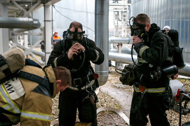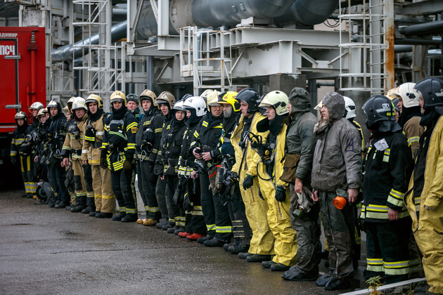 Журналисты «Владимирских ведомостей» стали свидетелями того, как десятки пожарных, с использованием разнообразной техники, в защитных костюмах и противогазах, отработали на ТЭЦ-2 сложное задание учений. Сотрудники МЧС действовали на двух участках сразу: одни тушили условный пожар, другие боролись с условным выбросом опасного вещества.