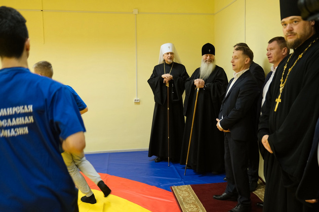 По благословению митрополита Тихона новому спорткомплексу присвоено имя святого благоверного великого князя Александра Невского. Иеромонах Андрей (Горюнов), иерей Андрей Сидоров и иерей Сергий Дубков совершили молебен и освятили тренировочные залы.