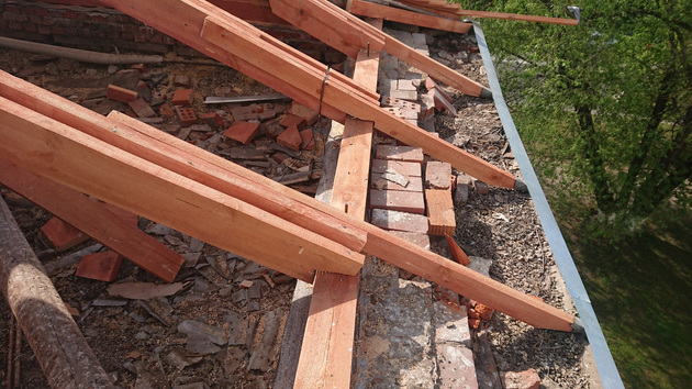 Вячеслав Лобанов рассказывает, что были проведены масштабные работы. Пришлось заменить 95% стропильной системы и вентиляционных каналов, установить наружную систему водостока и кровельное покрытие из оцинкованной стали.