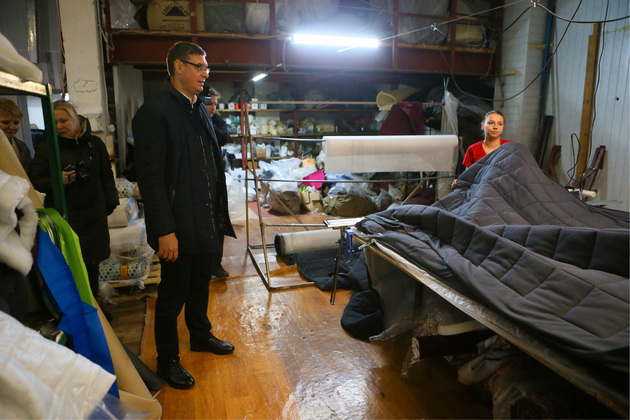 На швейном производстве, расположенном в городе Киржаче, недавно освоили технологию изготовления спальных мешков. Большую часть продукции отправили на линии фронта бесплатно. Главе региона показали промо-образцы – удобные для использования непромокаемые спальники. Это уже шестая усовершенствованная версия изделия. В месяц работники фабрики шьют около тысячи штук спальников, на одного сотрудника в день приходится примерно 10-15 предметов походного быта.