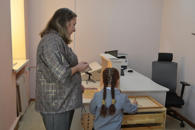 А учитель-логопед Екатерина Павлова вместе с маленькой ученицей показали, чем обогатилось и осовременилось оборудование кабинета для логопедических занятий. Все это оборудование по проекту «Доброшкола» педагоги тщательно подбирали сами по своим задачам.