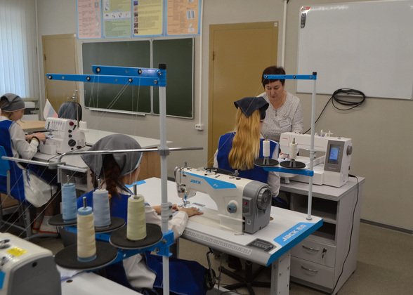 «До этого у нас было старое швейное промышленное оборудование 50-х годов, - рассказала Евгения Катунова. - И дети охотно на нем работали. Но современные машины позволяют полностью освоить технологию пошива изделий. Мы даже можем теперь выполнить пошив изделий бригадным методом, как в настоящем швейном цехе, Один человек, например, может стачивать изделия на универсальной машине, другой – обметывать, следующий - подшивать, затем можно использовать петельные машины. Кстати, бригадный метод обучения у нас есть в программе 9-го класса».