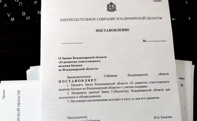Но прежде всего будет создан Совет по улучшению инвестиционного климата Владимирской области (его Положение и состав утвердит губернатор, но спикер ЗС Владимир Киселев уже выступил с предложением обязательно включить в него депутатов). Именно Совет будет признавать конкретные юрлица ответственными инвесторами и соответствие их проектов «целям и приоритетам» инвестиционного развития региона.