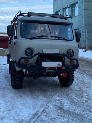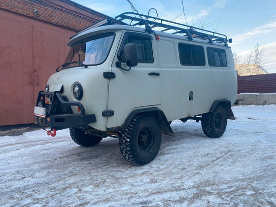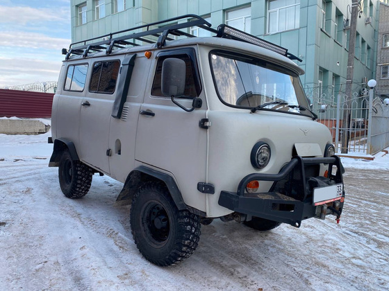 Микроавтобус Ульяновского автозавода, в народе известный как «буханка», оборудовали для внедорожных зимних условий: установили дополнительную печку и поставили зимний комплект шин, установили навесное оборудование, мощные железные фаркопы, лебёдку, лестницу и багажник на крыше для перевозки крупногабаритных грузов.