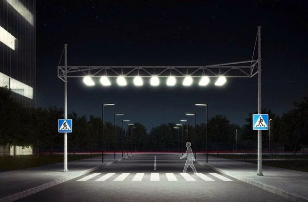 С наступлением зимы проблема освещённости пешеходных переходов становится особенно актуальной. Технология как раз позволит обезопасить пешеходов в тёмное время суток. Над проезжей частью устанавливают мощные светодиодные прожекторы, которые проецируют дорожную разметку. Созданный таким образом световой коридор полностью дублирует «зебру». Переходящий по такому пешеходному переходу человек становится более заметным - водители смогут увидеть его за 150 метров.