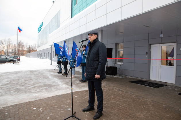 Александр Авдеев, Елена Фомина, Анатолий Зотов и Светлана Воронцова разрезали символическую красную ленту у входа в комплекс.