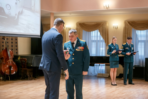 От имени депутатского корпуса спасателей поздравил вице-спикер ЗС Дмитрий Рожков. Церемония награждения продолжилась. Дошел черед и до ведомственных медалей, которые вручал начальник ГУ МЧС по Владимирской области Алексей Купин. Эти награды словно подтвердили слова губернатора о том, что спасатель не просто профессия. Спасателем может стать каждый и в любой момент.