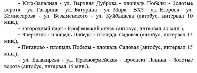 Автобусы в новогоднюю ночь будут курсировать по следующим маршрутам:
