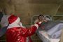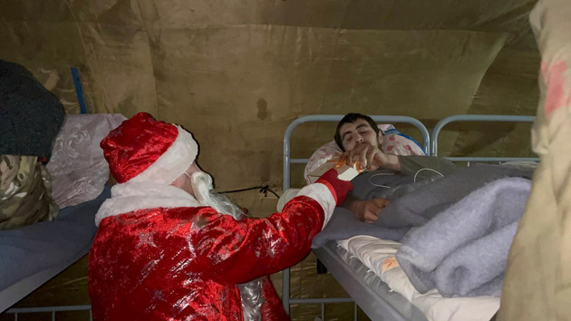 В госпитале Дед Мороз вручил каждому индивидуальный сладкий подарок от благотворительного приюта «Мамин домик». Это привнесло праздничную атмосферу и напомнило о домашнем уюте.