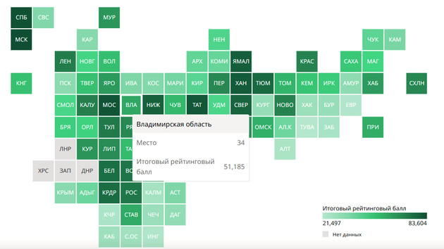 При этом показатели каждого субъекта «от рейтинга к рейтингу» могут разниться: то есть в одном регион будет красоваться в первой тридцатке, например, а в другом, наоборот, в последней. Так и получается итоговое место.
