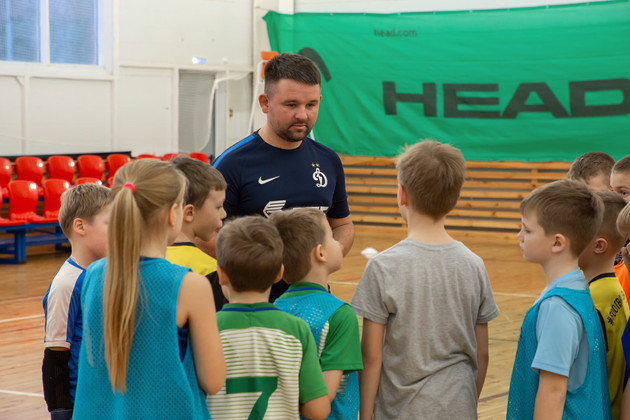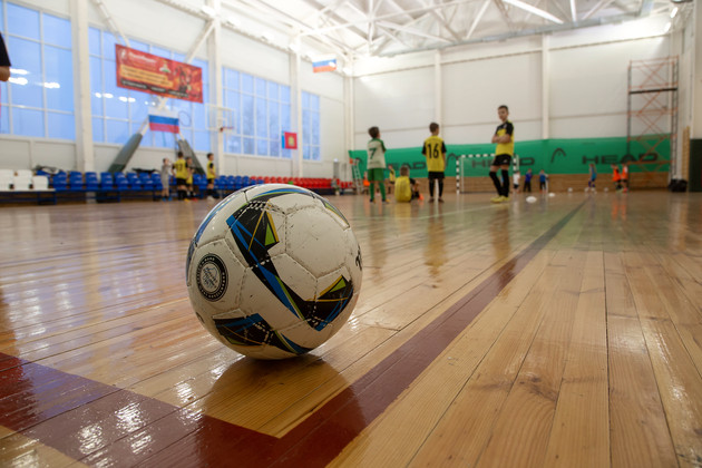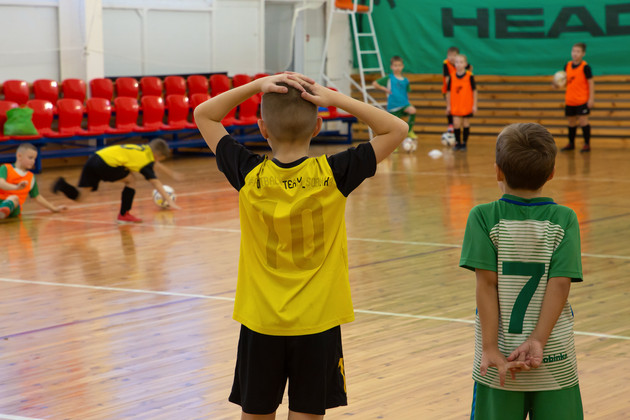 Как раз в игровом зале занималась одна из футбольных групп. Играли в мини-футбол.