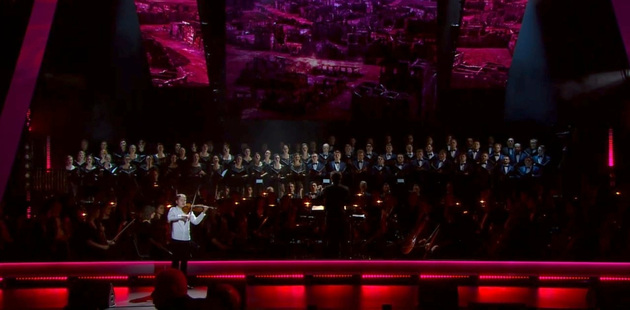 Глеб солировал на скрипке при проникновенном исполнении молитвы «Любовь святая» из хорового цикла Георгия Свиридова в сопровождении хора и оркестра. За дирижерским пультом был дирижер Большого театра заслуженный артист России Антон Гришанин.