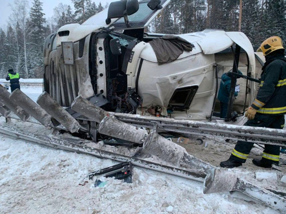 Согласно предварительной информации ведомства, фуру марки «Скания» занесло на заснеженной дороге. Водитель не смог справиться с управлением. Автомобиль несколько раз ударился об металлический отбойник, после чего перевернулся на левую сторону. К сожалению, шофёр погиб на месте ДТП.