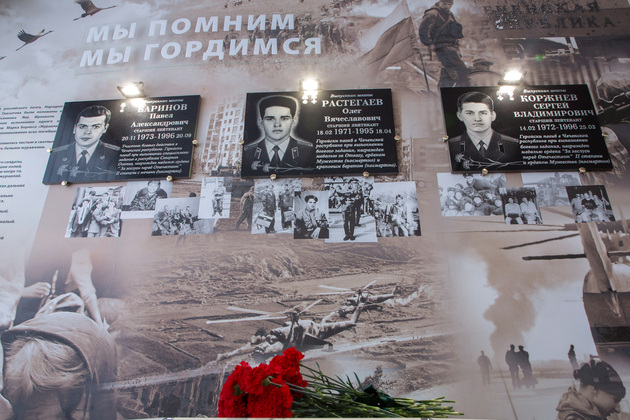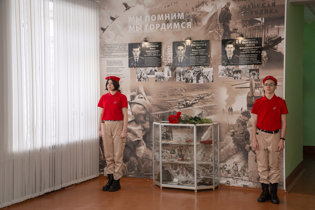 Затем участники этой церемонии поднялись из музея на этаж выше, где создано еще одно историко-патриотическое пространство в 16-й школе. Там с почетом размещены мемориальные доски в честь выпускников школы, героически погибших в локальных вооруженных конфликтах и борьбе с терроризмом. Это и рядовой Сергей Коровин, который погиб в Афганистане. Это и старший лейтенант Павел Баринов, отдавший жизнь в Республике Северная Осетия. А еще старшие лейтенанты Сергей Коржнев и Олег Растегаев, - они не вернулись из Чечни. Но остались героями своей школы. Все они были награждены государственными наградами посмертно. Гости возложили цветы к мемориальным доскам.