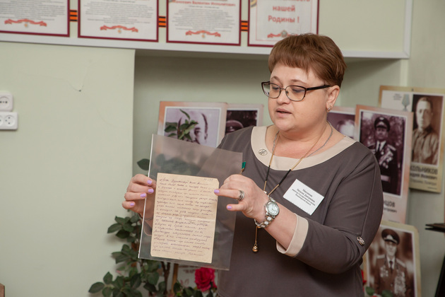И вот 22 февраля губернатор Александр Авдеев, его советник Николай Виноградов, министр образования и молодежной политики области Светлана Болтунова, глава города Владимира Дмитрий Наумов и другие почетные гости пришли в школьный музей. Девятиклассники - активисты музея, которым руководит Лариса Поджарова, представили редкую экспозицию музея «Народной памяти», рассказали о ее героях. На стендах собраны реальные свидетельства - письма и почтовые карточки с фронта, извещения, фотографии, личные документы и вещи, награды.
