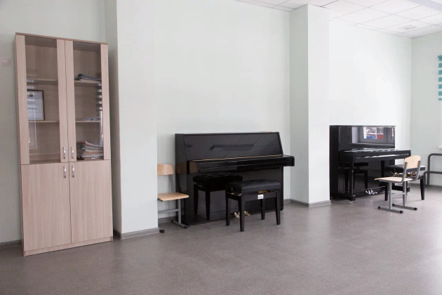 На эти деньги удалось приобрести мебель, оборудование для художественных классов. Без внимания не остались и музыканты. Для них купили несколько духовых инструментов, два новых рояля, два пианино. А у хористов теперь есть специальные станки (мобильные конструкции для выступления хоровых артистов).