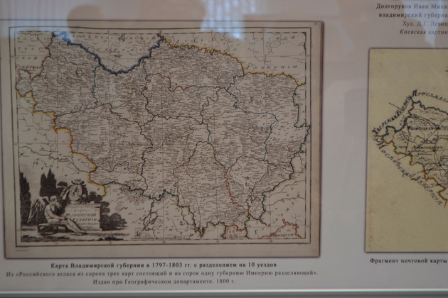 Сложившуюся при Екатерине систему уездов видоизменил уже в 1796 году ее сын Павел I. Он отменил и наместничества. А уже при внуке Екатерины Александре I в 1803 году Владимирская губерния со своими уездами приобрела тот вид, в котором просуществовала до революции. Выставка охватывает 25-летний период становления региона и называется «Рождение Владимирской губернии. 1778-1803 гг.».