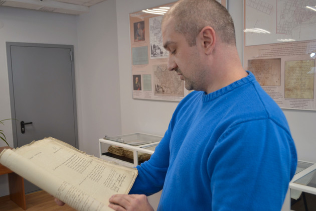 О разделах выставки и экспонатах рассказал ведущий архивист Государственного архива Владимирской области Роман Костоправов, который провел первую экскурсию по выставочным стендам.