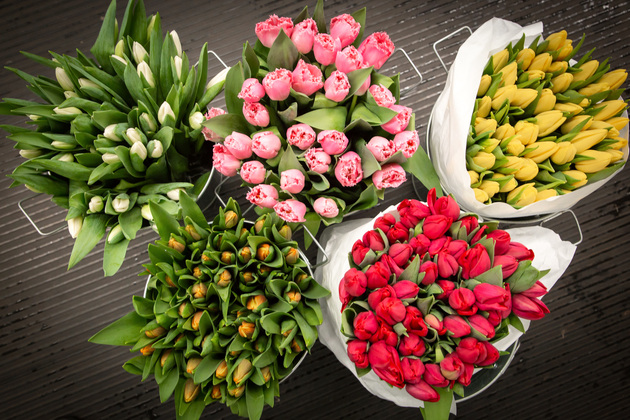 Длительность хранения тюльпана зависит от степени окрашенности и созревания цветка. Самый долгий – 25 дней (первая степень). Для реализации в торговых точках срезают цветы второй степени – до 16 дней хранения. Такие цветы стоят в коробках при температуре от +2 до +6 градусов. Совет: тюльпаны любят прохладу, дома букет лучше поставить в хорошо проветриваемое место, не следует возле батарей.
