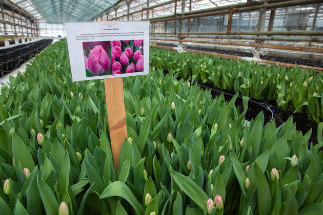 – Летом тюльпаны тоже выращивают. Для этого завозятся новозеландские луковицы. Саженцы проходят охлаждение в холодильниках и поставляются к нам с Южного полушария. Тюльпан летний выгоняют в меньших количествах, например, на сентябрьские праздники. Мы планируем выращивать в этой же теплице летний сорт. Объем пока не определен, – резюмировал Василий Васильев. Что касается зимних тюльпанов, на следующий год комбинат планирует увеличить объем выращивания.