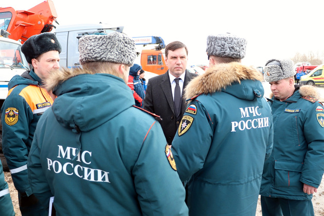 Параллельно на площадке аэродрома Добрынское в Суздальском районе состоялся смотр сил и средств, готовых к реагированию на чрезвычайные ситуации. Мероприятие провели начальник ГУ МЧС России по Владимирской области Алексей Купин и заместитель губернатора Александр Максимов.