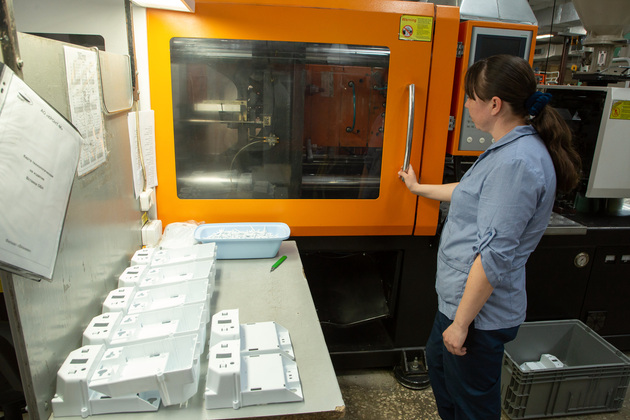 Директор филиала компании Екатерина Копейкина познакомила гостей с участками предприятия и рассказала о производственном процессе в цехе литья, на участках хранения пресс-форм, упаковки, металлобработки и других.