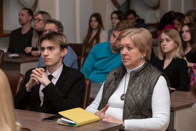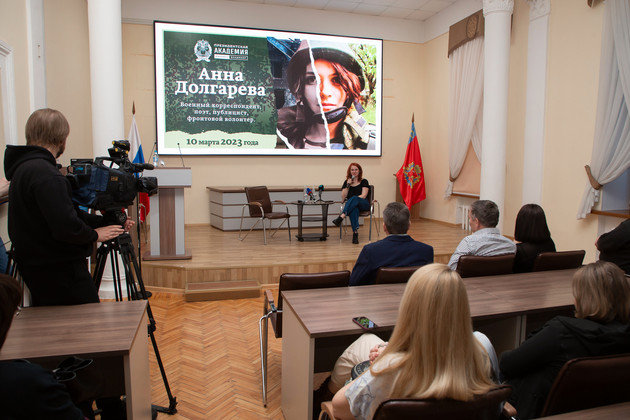 - Наш филиал, как и другие организации, активно помогает нашим военнослужащим, участвующим в специальной военной операции. У нас много контактов, и военкоры, которые находятся в гуще событий, являются обладателями уникальной информации о том, что там происходит. Анна Долгарева - человек неординарный. В силу сложившихся обстоятельств Анна сама пережила очень многое - теряла близких, видела смерть. Как человек творческий, она заложила это в свои стихи. Слушать их тяжело. Они передают сложность и тяжесть того, что там происходит. При этом они проникнуты правдой, пониманием противоречий. Уверен, такие встречи очень важны для каждого из нас, кто живет обычной мирной жизнью. Это надо слышать и понимать, пропустить через свое сердце, чтобы еще больше помогать нашим воинам, добровольцам, мобилизованным, чтобы они чувствовали нашу поддержку. Те потери, которые, к сожалению, есть, не напрасны, они направлены на защиту интересов нашей страны, наших людей. Я рад, что Анна нашла время приехать во Владимир, такие встречи очень важны и для студентов, и для общественников.