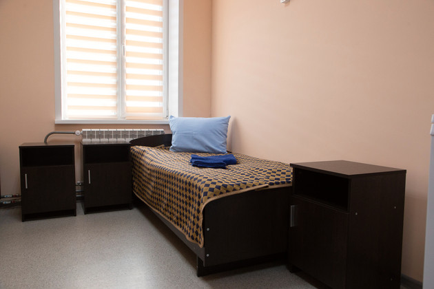 А еще в здании есть зал для хореографии, общежитие на 37 спортсменов и медицинский блок, не говоря уж о раздевалках и прочих бытовых и технических помещениях. Общежитие занимает весь третий этаж. Это восемь трехместных комнат, одна четырехместная. В каждом номере есть холодильник, телевизор, душ и туалет. Уже состоялось три заезда. Кроме залов и раздевалок мы также обратили внимание на продвинутую систему вентиляции. На первом этаже находится просторная столовая.