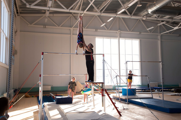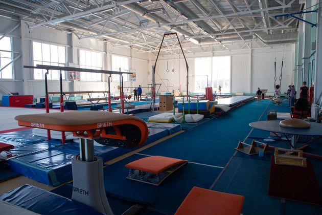 – Оборудование все новое. Профессиональный ковер, на котором ребята отрабатывают вольные упражнения. Брусья, женские и мужские, снаряды для опорного прыжка, кольца, перекладины, бревна, батут, подготовительный снаряд, на нем обучаются акробатическим элементам, две акробатические дорожки –– перечислил «обновки» Дмитрий Смирнов.