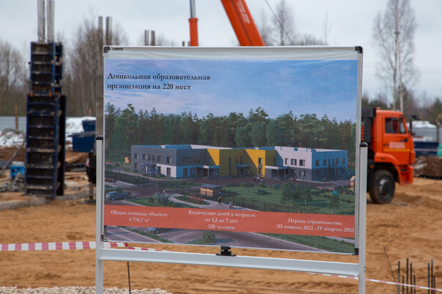 Затем депутаты посетили непосредственно поселок Доброград, где строятся сразу несколько социальных объектов, включая школу, детский сад и ФОК.