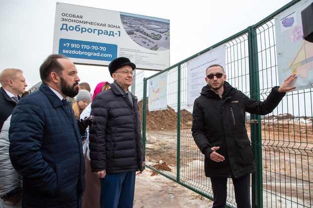 Первым делом депутаты прибыли на площадку ОЭЗ «Доброград-1». Узнали о темпах и объемах строительства инженерных сетей, производственных помещений. Проехали вглубь территории ОЭЗ и побывали в уже готовящемся к запуску корпусе роботизированного производства компании по выпуску геотермальных тепловых насосов.