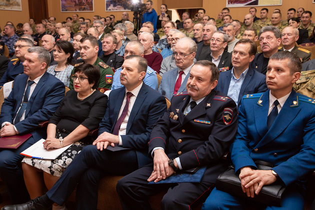На торжество владимирские росгвардейцы всех рангов, ветераны и гости собрались в клубе Управления Росгвардии по Владимирской области на Суздальском проспекте. Здесь с 1956 года располагался конвойный батальон, а затем полк Внутренних войск. Кстати, от имени губернатора и областного правительства коллег поздравил в прошлом командир того полка, а ныне министр региональной безопасности области Сергей Полузин.