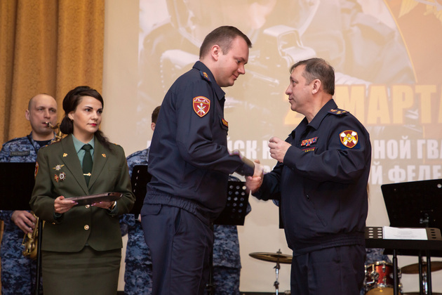 Праздничное собрание сопровождал оркестр управления Росгвардии под руководством военного дирижера Алексея Бакшеева. Кстати, этот коллектив является лауреатом престижных конкурсов военных оркестров, включая даже международный уровень. Еще одним примером связи поколений на праздничном вечере стало выступление юной певицы Сони Бакшеевой, старшей дочери начальника оркестра Росгвардии.