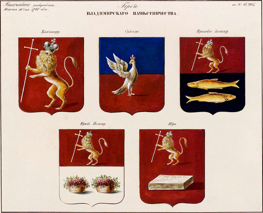«…А по справке в Суздальском уездном суде по делам бывшей Суздальской провинциальной канцелярии, какой города Суздаля герб, сведения никакого не оказалось. По выслушивании оного указа и учиненной в Суздальском уездном суде справки господин Суздальский уездный судья коллежский асессор Лопухин... словесно предложил: