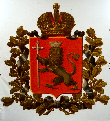 3-е. Хотя Владимирское наместническое правление за способное и признает, чтоб по губернской границе ставить гербы губернские обеих губерний на одном столбе таковым образом, чтоб каждая сторона со означением герба стояла вовнутрь своей губернии, однако ж сие остается на общее соглашение с комиссарами прикосновенной губернии, чего ради и к выжиганию тех гербов и даются вам по образцу сделанные железные штемпели».