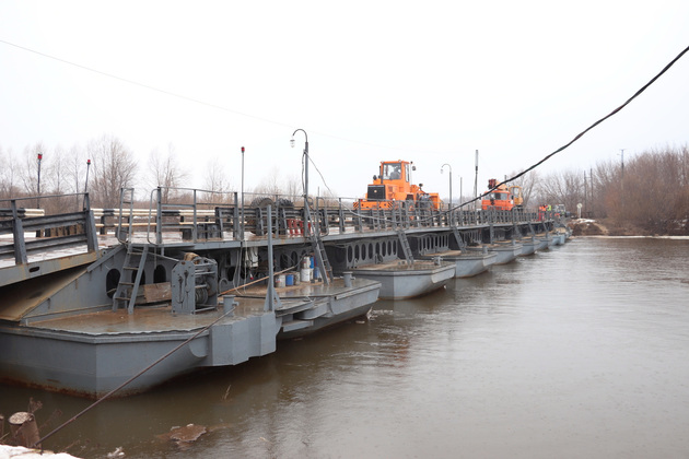 В конце поездки, мы наблюдали, как разводят понтонный мост через реку Клязьму. 24 марта были проведены работы по снятию аппарелей, движение автотранспорта по мосту было прекращено. Что касается переправы, то она перевозит людей с 7 часов утра в два приема - с 07.00-09.00 часов и с 17.00-19.00 часов. Перевозка – бесплатная.