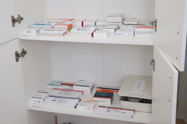 На первом этаже учебного корпуса расположен ФАП, которым заведует Нина Лебедева. Все необходимые лекарства и вакцины для прививок заранее поступили в учреждение. Медик показала свой «экстренный чемодан», в котором находится все необходимое для оказания экстренной помощи: прибор для измерения уровня сахара в крови, физраствор и иглы для капельниц и другое. Также в распоряжении фельдшера – кардиограф. Анализы на коронавирус тоже можно сдать прямо в ФАП.