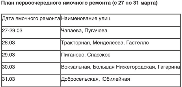 К слову, на улице Чапаева уже на этой неделе ямы «закроют» щебнем, но в целом на этом участке власти намерены сделать капитальный ремонт. «В апреле будет подписан муниципальный контракт на производство капитального ремонта всей проезжей части», – отметили в пресс-службе мэрии. В микрорайоне Юрьевец, судя по всему, работы стартовали еще во вторник, 28 марта. Жители отметили, что на подъезде к микрорайону Пиганово дорожники вырезали квадраты в местах, которые необходимо восстановить. Теперь автолюбители ожидают, когда выемки залатают.