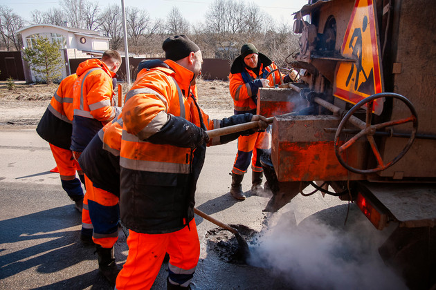 «Как только среднесуточная температура будет выше пяти градусов, работы по литому асфальтобетону прекратим и перейдем на струйно-инъекционный метод и ямочный ремонт горячими смесями», – комментирует Михеев.
