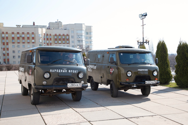 По всей стране формируется гуманитарный груз – «машина для фронта». В конце апреля автомобили централизованно отправят в Ростовскую область, а затем распределят по военным частям. Автомобили уже оборудованы всем необходимым. В УАЗики погрузили печки, дрова, запасные колёса.