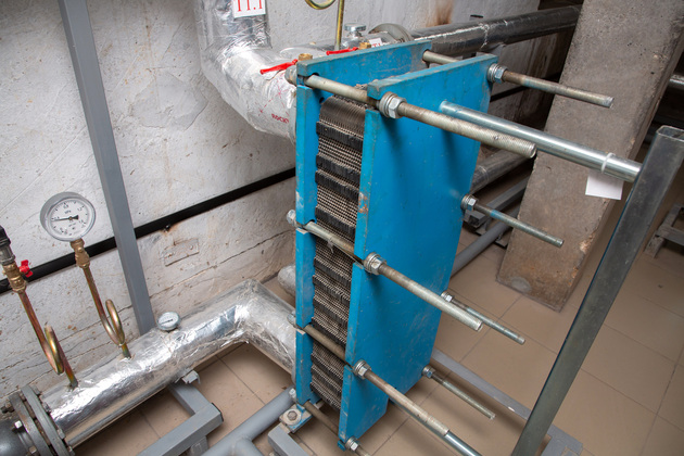 Жильцы дома с гордостью показали мне тот самый регулятор потребления тепла. Он оснащен метеодатчиком и в автоматическом режиме поддерживает оптимальный уровень температуры. Это даже не прибор, а целый аппаратный комплекс – узел регуляции тепловой энергии. С его помощью не только формируется необходимый объем теплоносителя, но и регулируется скорость потока воды и ее температура, которая может варьироваться от 35 до 65 градусов.