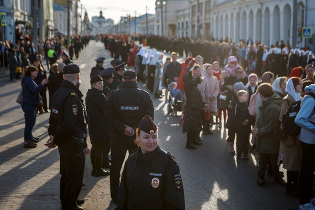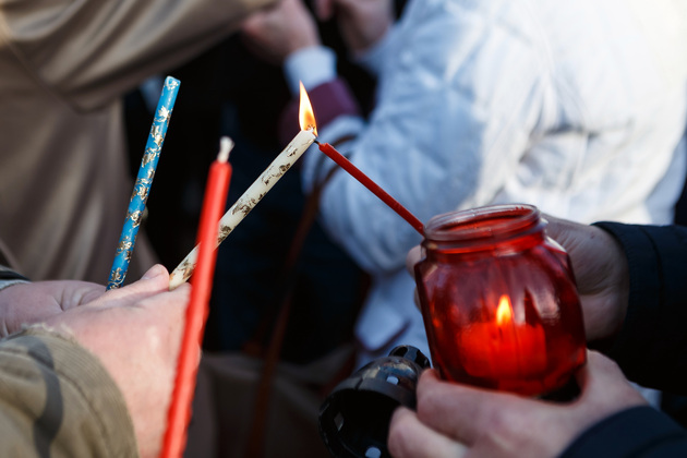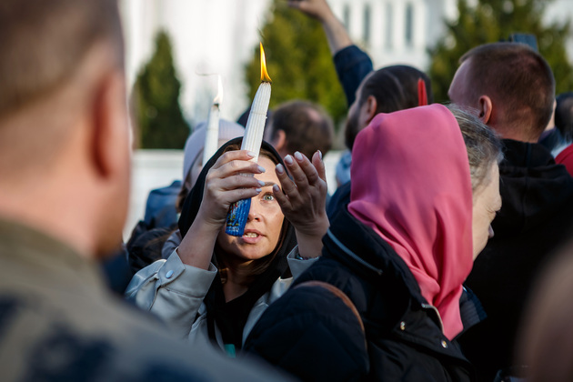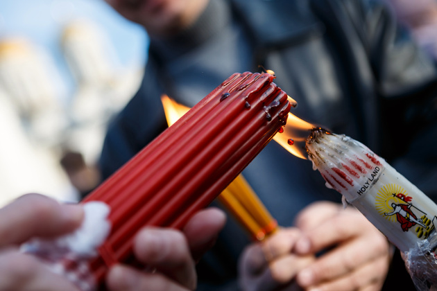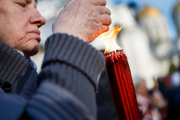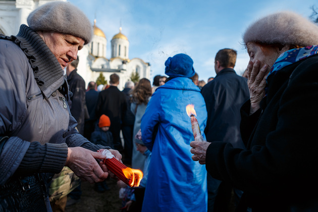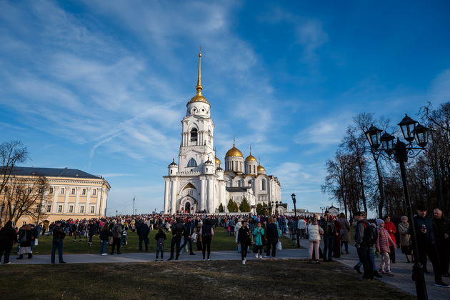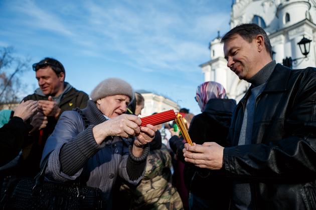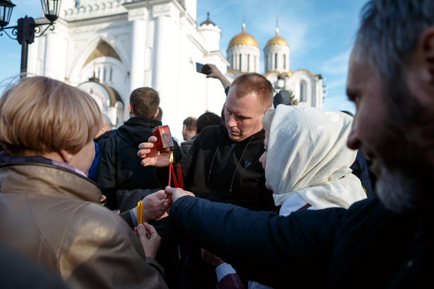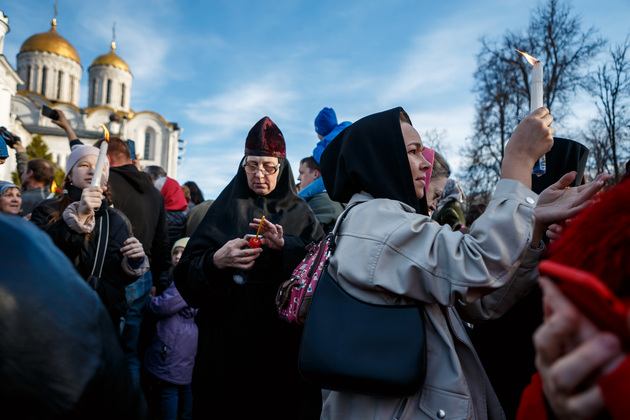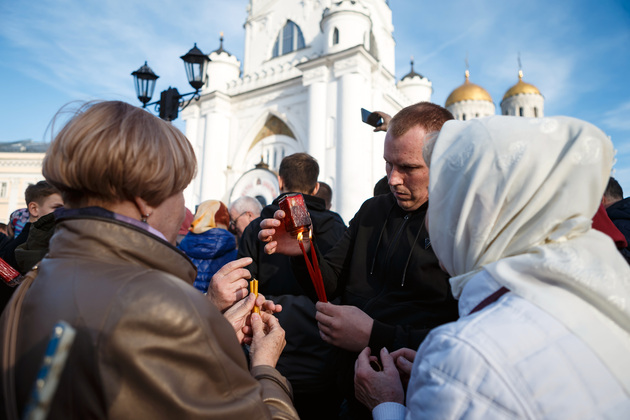 В Светлое Христово Воскресенье во Владимире на Соборной площади возле Успенского собора верующие встретили Благодатный огонь из Иерусалима. После того как святой огонь доставили в Москву, его частички повезли по регионам.