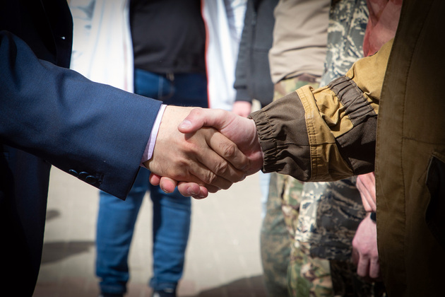 В этот день контрактников также пришли поддержать представители боевого братства – жители областного центра Даниил, Алексей и Евгений. Они недавно вернулись из зоны боевых действий и снова готовятся к участию в спецоперации.