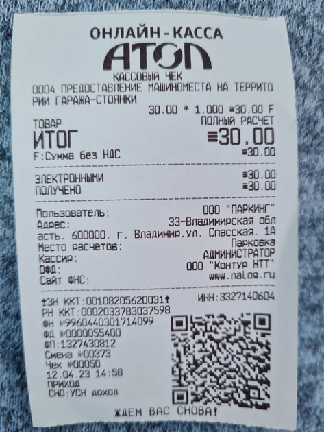 Журналисты редакции решили провести «контрольную закупку» и проехали на автостоянку, задержавшись там на полчаса. На выезде администратор-охранник буднично попросил оплатить стоимость парковки, при этом - наличными. Получив отказ и нехотя предоставив банковский терминал для оплаты картой, администратор долгое время отказывался выдать кассовый чек. Однако был вынужден это сделать после настойчивых требований с нашей стороны.