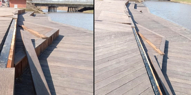 Однако весной текущего года выяснилось, что отделочное покрытие набережной, выполненное из деревянных дощечек, частично разрушено, что затрудняет беспрепятственный проход по ней граждан и является небезопасным.