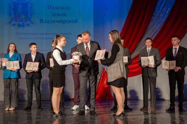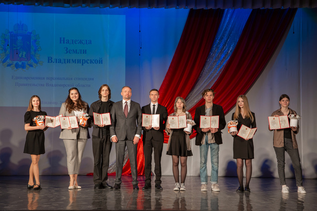 Единовременные персональные стипендии «Надежда Земли Владимирской» присуждаются одарённым и талантливым детям и молодым людям за выдающиеся успехи в области образования и науки, культуры, спорта, журналистики, детского и молодёжного общественного движения. В этом году размер стипендии составил 12 500 рублей