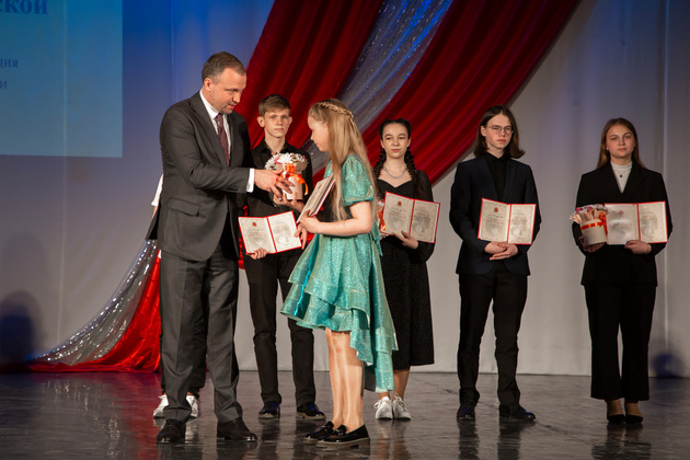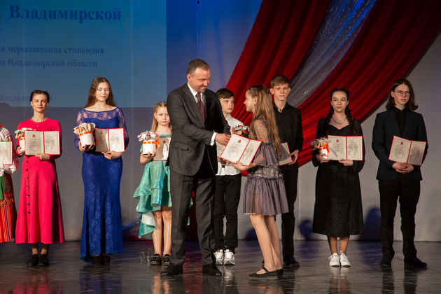Перед лауреатами выступил первый заместитель губернатора Владимирской области Александр Ремига. Он поблагодарил стипендиатов, их родителей и педагогов за вклад в развитие 33-го региона. Александр Ремига добавил, что Владимирская область успешно развивается несмотря на все трудности (пандемия, санкции), но очень важно при этом не останавливаться на одном месте. Главное - смотреть вперёд, думать о будущем и ставить новые цели.