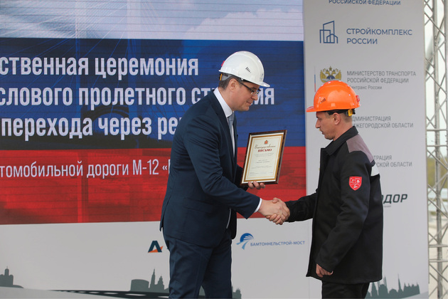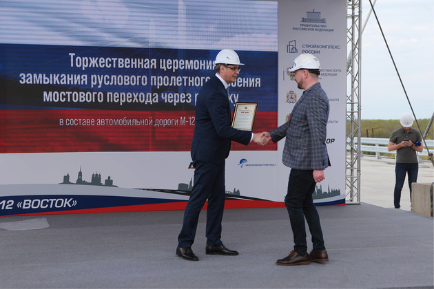 Председатель правления компании «Автодор» Вячеслав Петушенко акцентировал, что новый мост был возведен всего за два с половиной года. При этом была применена высокоэффективная технология – система скользящей опалубки, благодаря чему существенно сократились сроки строительных работ без потери качества. Теперь опыт строительства вантового моста будет масштабирован при возведении подобных объектов на всей трассе М-12.