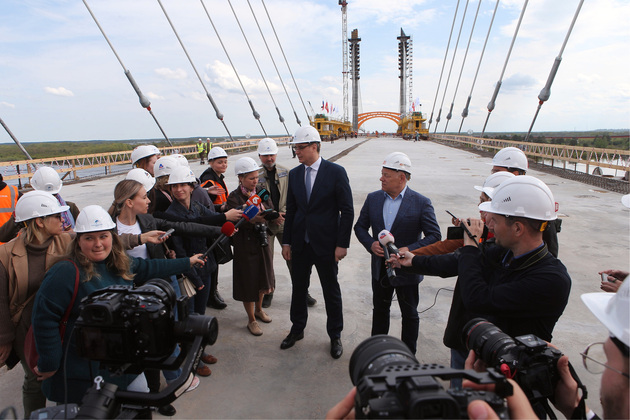 Губернатор Александр Авдеев назвал завершение строительства пролета вантового моста историческим событием. Он отметил, что вантовый мост был построен в рекордные сроки, а движение по нему откроется уже в начале сентября 2023 года.