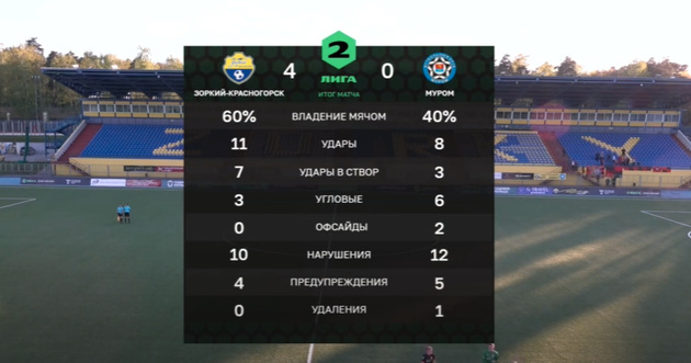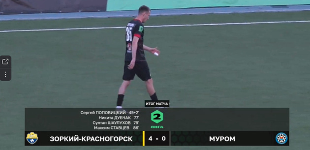 Ну и на 86-й минуте состоялся четвертый гол «Зоркого»: «Муром» не сдержал быструю контратаку «Зоркого», и отличился Максим Ставцев – 4:0.